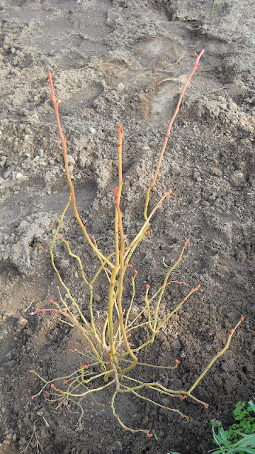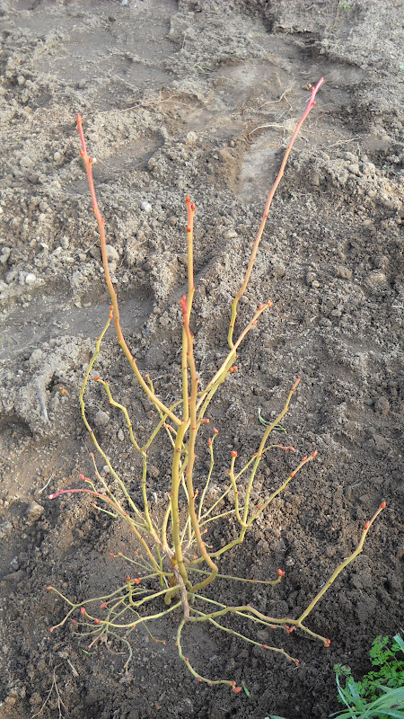 16 de janeiro de 2012: plantação de um mirtilo, arbusto da família das ericáceas, a mesma da azálea. Pretendo saber se vai ou não adaptar-se ao solo e microclima do quintal, não para produção comercial já se vê, mas tão só para o valorizar com mais uma variedade de pequenos frutos que tanto aprecio. O exemplar plantado é demasiado ramalhudo para meu gosto mas espero vir a corrigir a estrutura na poda do próximo inverno.