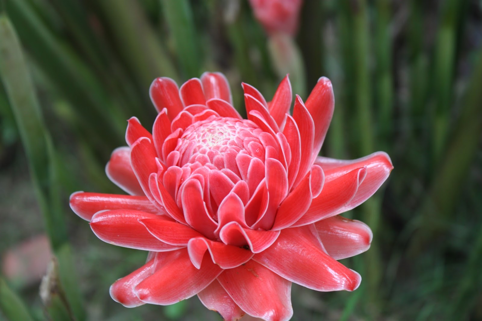 A planta é vivaz e pertence á família das zingiberáceas parente próxima da família que inclui as bananeiras. Folhas e flores partem de raízes subterrâneas semelhantes a rizomas. As folhas em verde-escuro são persistentes e podem atingir os 5 m de altura em ambiente tropical e 2 a 3 m em estufa. As flores agrupadas em inflorescências cónicas, saem de brácteas cerosas. São em vermelho ou cor-de-rosa vivos e medem cerca de 2 cm de comprimento.