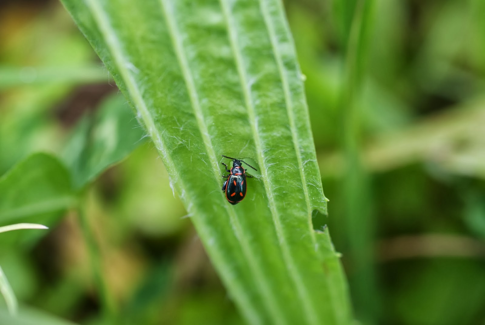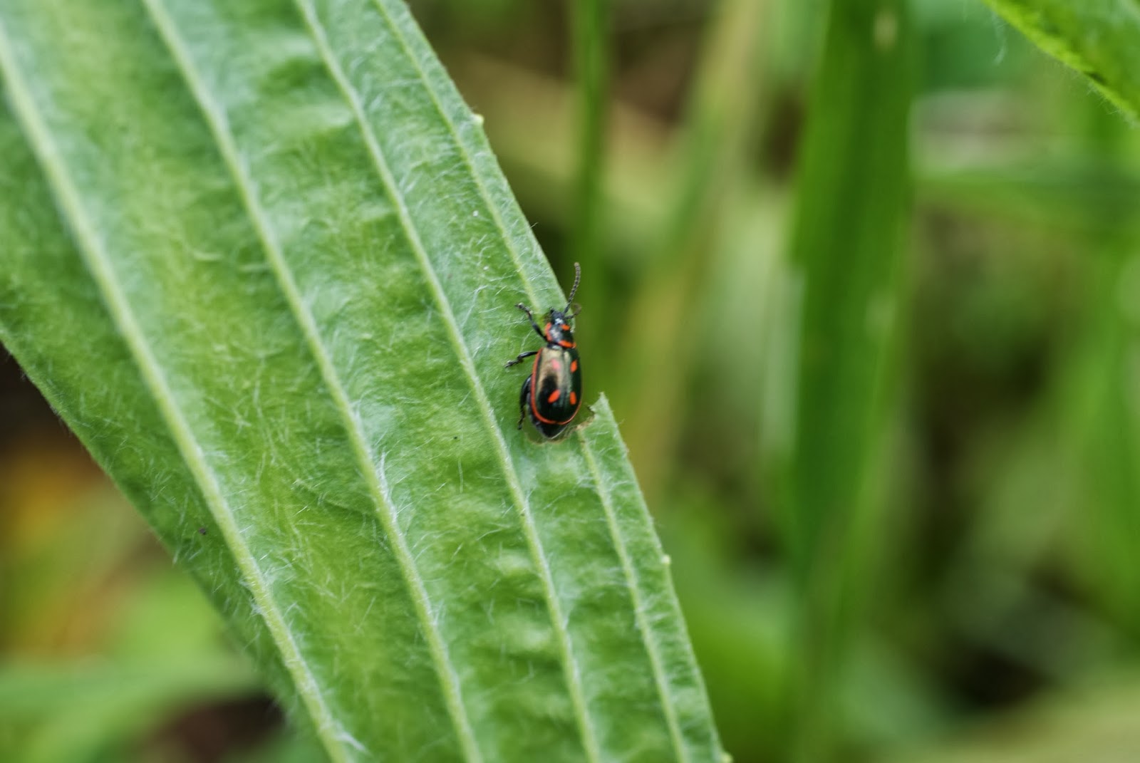 Para início do passeio, nada mal!  Seria um dos mais interessantes encontros do dia. Faltava conhecer a identidade das bichezas, questão minha pois na sua placidez continuariam indiferentes à  ignorância sem fundo do atrevido perguntador.  Demasiado tempo explorando a hipótese de os situar na multidão que integra a Família Coccinellidae (a mesma da joaninha-comum), mas teimando, teimando sempre, acabei voltando a  outra parentela de besouros, escaravelhos, carochas, gorgulhos, carunchos, pirilampos e tutti quanti...Género Oedionychus, Família Chrysomelidae, Ordem Coleoptera.
